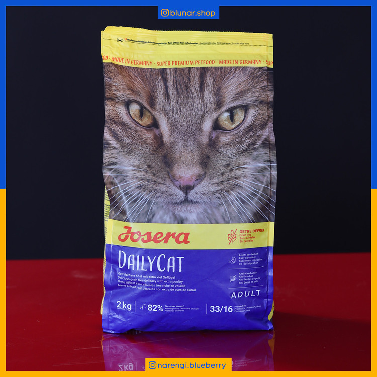 جوسرا دیلی کت یک محصول Grain-free و مناسب برای گربه های خانگی و یا بیرونی که نسبت به غلات حساسیت دارند و علاقه ویژه ای به مرغ دارند. در ترکیبات این محصول در کنار گوشت مرغ، به جای غلات از سیب زمینی شیرین ، نخود فرنگی ، فیبر چغندر و میوه جات و سبزیجات استفاده شده است.