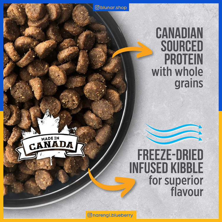 منابع پروتئینی خوشمزه در این غذا با مرغ خام تازه، جگر مرغ خشک و یخ زده که با مواد سالمی مانند روغن ماهی، هویج، اسفناج، کلم بروکلی، کدو تنبل، کدو حلوایی، زغال اخته، انار، سیب، زنجبیل، رازیانه، بابونه، برگ نعناع، ریشه شیرین بیان، زردچوبه و روغن نارگیل طعم دار شده و به آرامی در فریزر خشک میشوند.(فرآیند تولید به روش انجماد سریع)