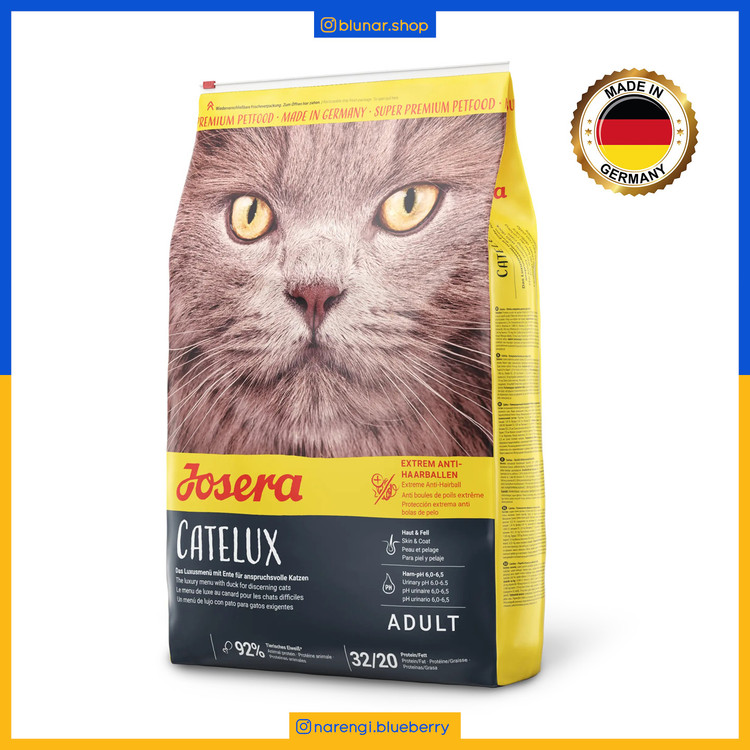 جوسرا کتلوکس با ترکیب لذیذی از اردک ، مرغ ، سیب زمینی شیرین ، دانه کامل ذرت ، فیبر چغندر و جگر مرغ ، با داشتن 20 درصد چربی ، ترکیبی جذاب و مقوی برای گربه های فعال و در حال رشد است. همچنین بدلیل داشتن فیبر بالا برای گربه هایی که مستعد تشکیل گوله مو هستند و یا گربه های مو بلند مناسب تر است.