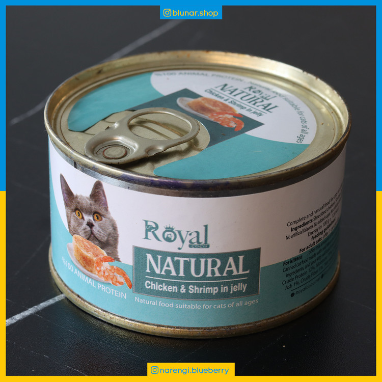 کنسرو نچرال مخصوص گربه رویال - مرغ و میگو در ژله - 220 گرمی